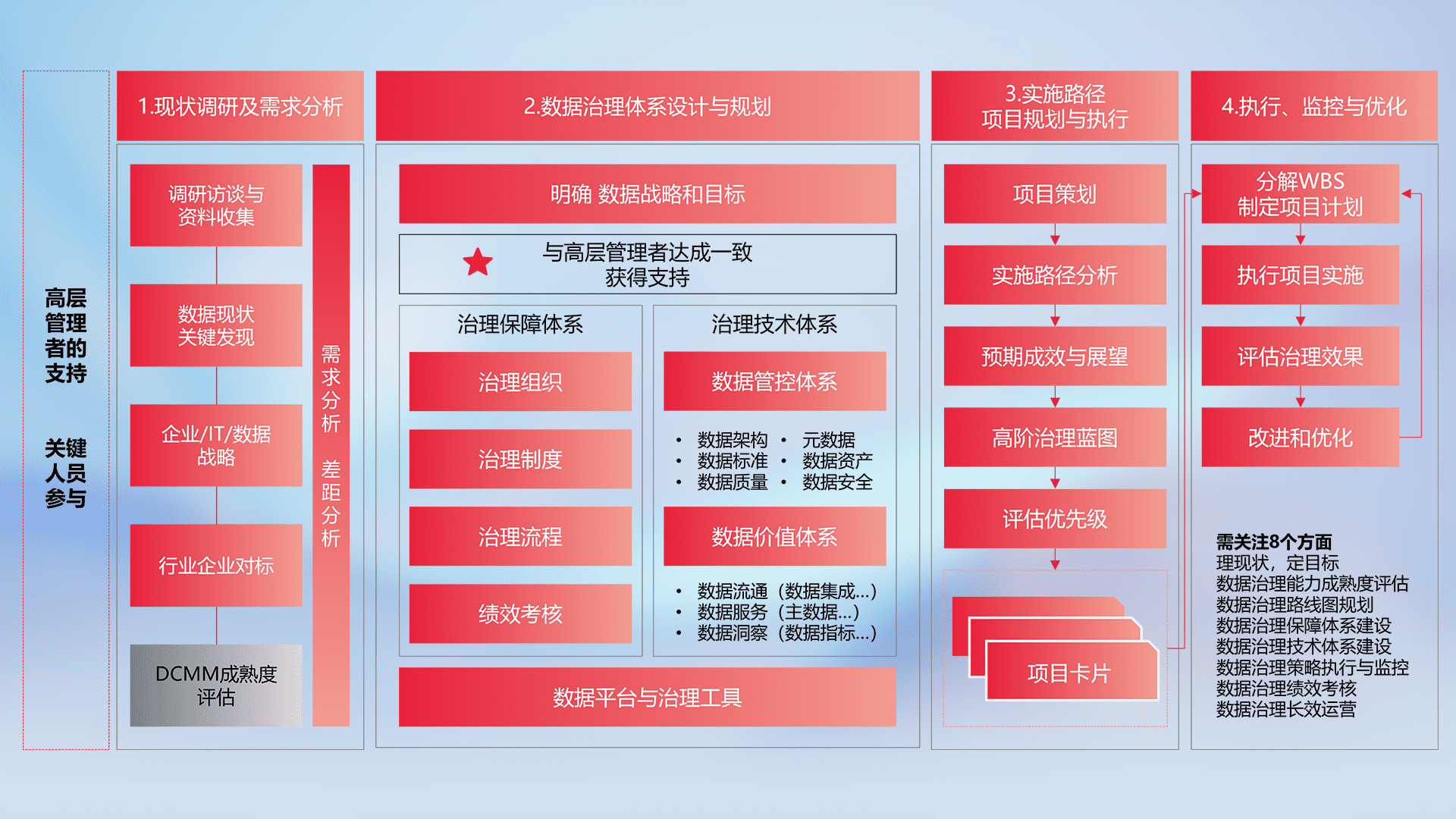 以高阶专业视角定制解决方案,结合行业最佳实践,覆盖数据全生命周期管理,确保策略落地执行,助力企业构建高效、可持续的数据管理体系,推动数字化转型。
